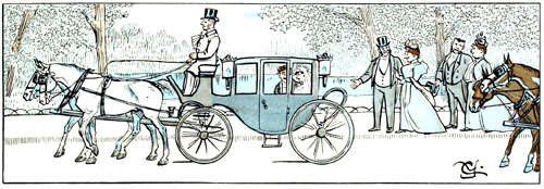 Toute aux bicyclettes.—L'accumulation de ces mécaniques donne à l'élégant carrefour l'aspect d'une gare de marchandises ou d'une exposition de machines agricoles,—les gens qui viennent en voiture en ont tout un chargement, et les cavaliers qui persistent à monter à cheval font aux gens qui sont «dans le train» l'effet de maniaques qui s'obstineraient à refuser de monter en sleeping et voyageraient en chaises de poste.