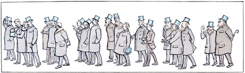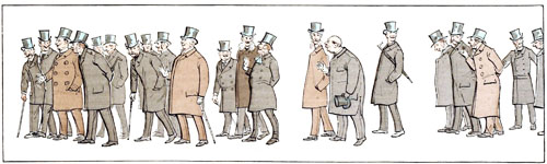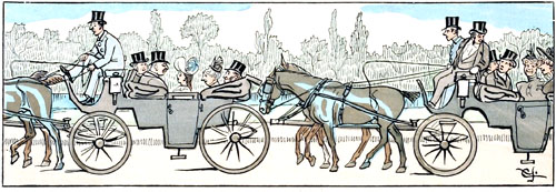 C'est toujours au moment où le défilé des voitures est le plus actif, où les chevaux sont le plus animés, que l'autorité spéciale intervient et exige qu'on les arrête pour laisser passer le public de la Pelouse. Si les chevaux s'impatientent de façon à rendre la station inquiétante, s'ils pointent au point de faire craindre qu'ils se renversent sur les genoux de leurs conducteurs, on peut être sûr que ladite autorité abusera de son pouvoir discrétionnaire pour faire défiler une nouvelle escouade de piétons.