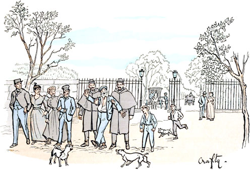La consigne qui veut que les voitures traversent au pas cette oasis destinée aux récréations des enfants et des nourrices est parfaitement légitime, et nous trouvons tout naturel qu'on cherche à préserver de tout accident les générations de l'avenir. Mais ne serait-il pas de toute justice qu'on exigeât une certaine réciprocité pour la sécurité des attelages qui s'y aventurent, et qu'on interdît à ces jeunes gens, si paternellement protégés par les arrêtés municipaux, de lancer au nez des chevaux une aussi grande variété de projectiles?