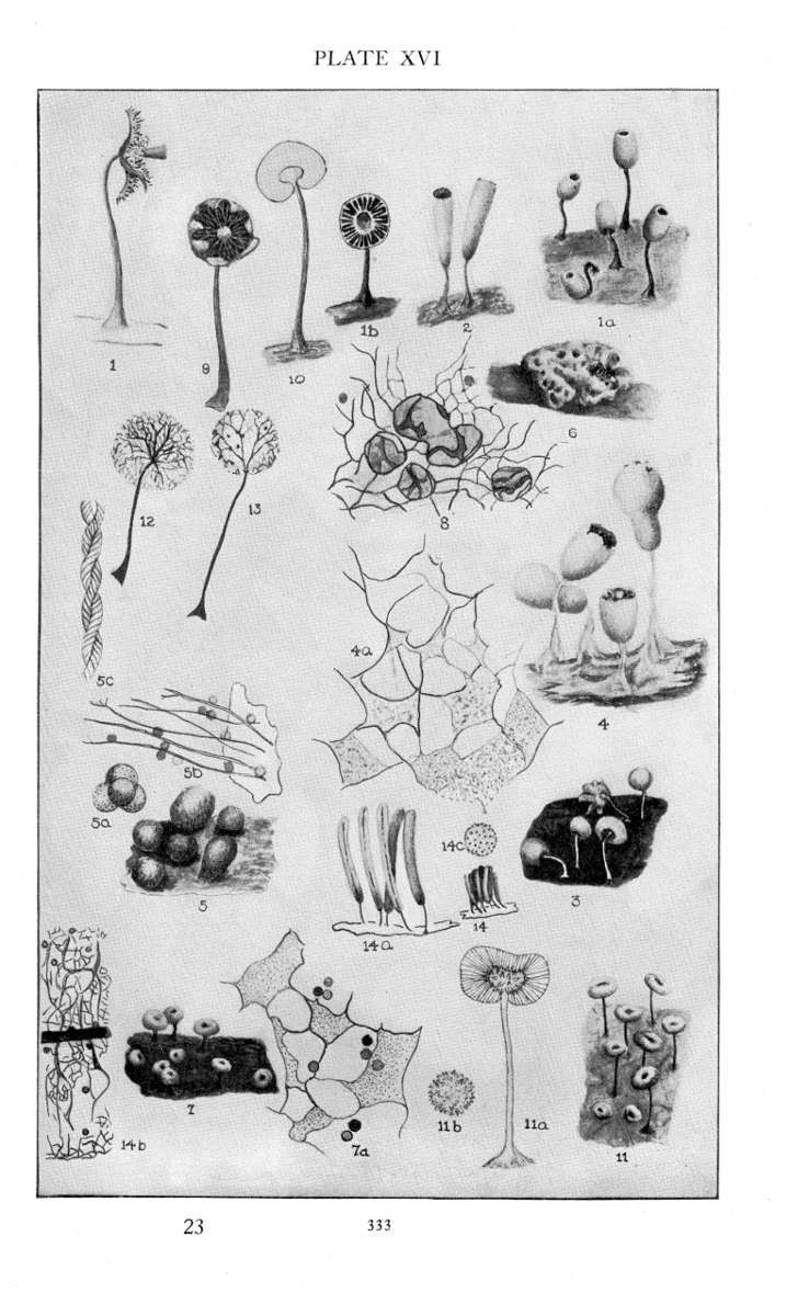 Fries, in his Systema Mycologicum, 1829, summed up in most wonderful way the work of all his predecessors and the mycologic science of his time. In reading Fries the modern student hardly knows which most to admire, the author's far-reaching, patient research, the singular acumen of his taxonomic instinct, the graceful exactness of the Latin in which his conclusions are expressed, or the delicate courtesy with which he touches the work even the most primitive, of those his predecessors or contemporaries. Nevertheless in our particular group even the determinations of Fries are not conclusive. He himself often confesses as much. The microscopic technique of that day did not yield the data needful for minute comparison among these most delicate forms.