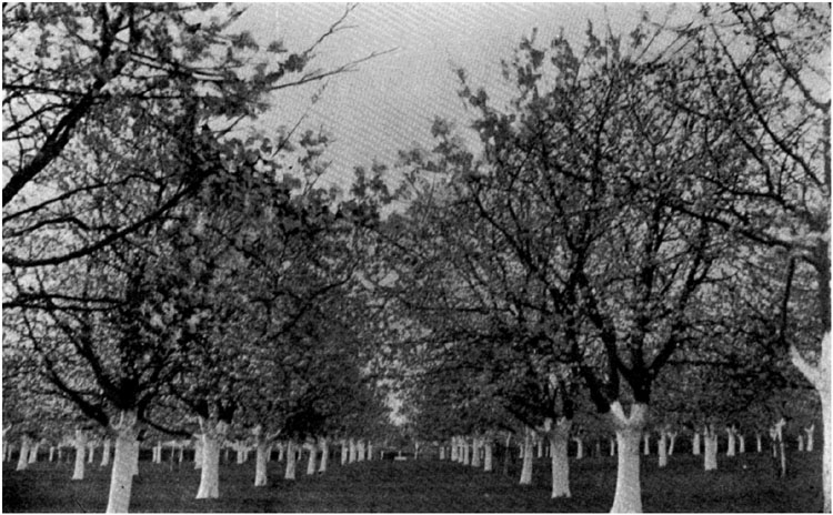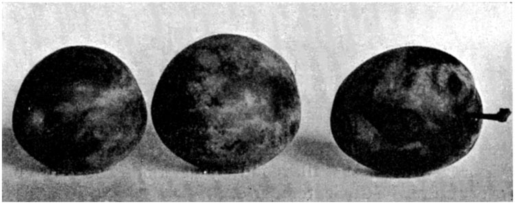 [Pg 88]Ordinary manure is not often given. It may cause rank growth. Dr Griffiths recommends the following artificials: 3 parts weight of kainit, 2 parts of superphosphate, 1 part of nitrate of soda. Three lbs. of this mixture should be applied to each tree shortly before active growth begins. If the land is deficient in lime or chalk some should be given to each tree.