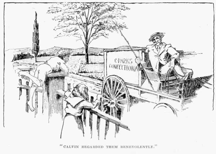 The brown horse had a dull day of it. No cheery remarks, no snatches of song, no cracking of the whip about his responsive ears. He whinnied remonstrance and inquiry now and then, but received no reply. Calvin Parks drove moodily along, his shoulders up to his ears, his head sunk between them, his eyes staring straight ahead. He could hardly even bring his mind to trade, and Mrs. Weazel got five cents off the price of her marshmallows, and was straightway consumed with anguish because she had not tried for ten.