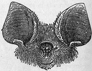 The second or typical subfamily, Vespertilioninae, includes all the remaining members of the family with the exception of the aberrant Molossinae. The upper incisors are in proximity to the canines; the premaxillae widely separated; the ears medium or large; the dental formula is i. 2/3 (or 1/3), c. 1/1, p. 3/3 (2/3, 2/2, or 1/2), m. 3/3; and the fibula very small and imperfect. All the members of this large cosmopolitan group are closely allied, and differ chiefly by external characters. They may be divided into subgroups. In the first of these, the Plecoteae, of which the long-eared bat (Plecotus auritus) is the type, the crown of the head is but slightly raised above the face-line, the upper incisors are close to the canines, and the nostrils are margined behind by grooves an the upper surface of the muzzle, or by rudimentary nose-leaves; the ears being generally very large and united. Of the six genera, Plecotus, with i. 2/3, p. 2/3, has three species:—one the long-eared European bat referred to above; P. macrotis, restricted to North America, is distinguished by the great size of the glandular prominences of the sides of the muzzle, which meet in the centre above and behind the nostrils; the third species being also American. The second, Barbastella, with i. 2/3, p. 2/2, distinguished by its dentition and by the outer margin of the ear being carried forwards above the mouth and in front of the eye, includes the European barbastelle bat, B. barbastellus, and B. darjelingensis from the Himalaya. Otonycteris, i. 1/3, pm., 1/2, connecting this group with the Vespertilioneae, is represented by O. hemprichii, from North Africa and the Himalaya, and an Arabian species. The next two genera are distinguished by the presence of a rudimentary nose-leaf: Nyctophilus, i. 1/3, p. 1/2, with three species from Australasia; and Antrozous, i. 1/2, p. 1/2, distinguished from all the other members of the subfamily by having but two lower incisors, and from other Plecoteae by the separate ears; the two species inhabit California. The sixth genus, Euderma, is also represented by a Californian species.