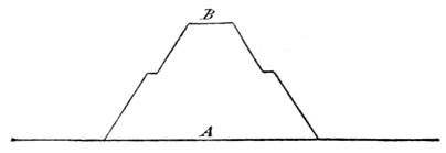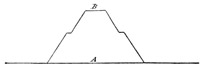[11]The principal mound B is terraced about half way up and was 82 feet in height. A cross section of it is shown in Fig. 3, A-B.