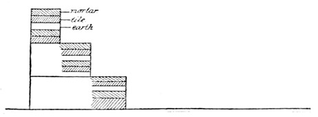 The great mound and most of the others in the vicinity are faced with mortar made of sand and lime from burnt oyster shells. On one or both sides are flights of steps which lead up to the summit. These are constructed of layers of mortar, tiles and hard-pounded earth, distributed in the manner represented in Fig. 4.