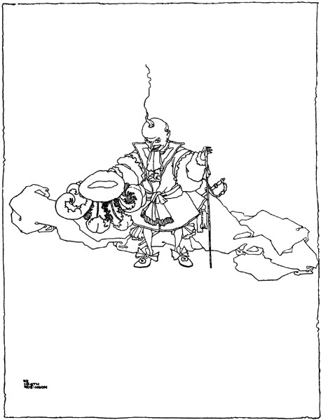 Rosette thanked them for the trouble they were taking, and promised to govern the kingdom well. She declared that while they were away her only pleasures would be to admire the beautiful peacock and make Frillikin dance. Their adieux were said with many tears.