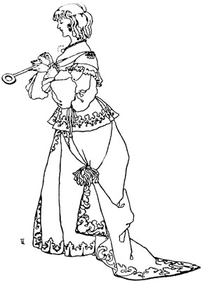 They passed into an apartment hung with mirrors, and were there served with supper by the stewards of the household, while the fiddles and oboes played some old music—and played it remarkably well, considering they had not played at all for just upon a hundred years. A little later, when supper was over, the chaplain married them in the castle chapel, and in due course, attended by the courtiers in waiting, they retired to rest.