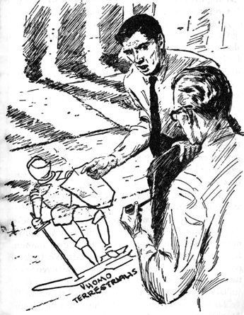 "Yes. That was natural enough. But because of his warped personality, he went from a natural reaction to a psychopathic one. He decided to take revenge. We don't know why he decided to call himself the Earthman, except that he apparently saw himself as a shining knight in armor, setting to rights the earth's wrongs—of course he meant the wrongs supposedly done to him. Being a design engineer he was naturally something of an artist, although his record didn't show any special talent."