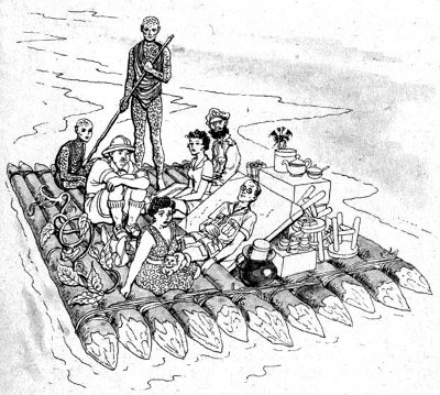 "Oh, all right," he muttered. "Just for you, then. Told you not to trust any of 'em," he went on, reluctantly poling the raft in the ordered direction. "Foreigners!"