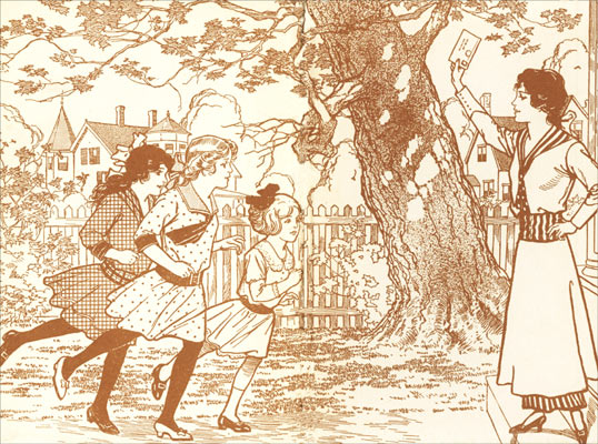 As the two youngest Kenway girls came out of the stationery and book store, Miss Pepperill was entering. Tess and Dot had met Miss Pepperill at church the Sunday previous, and Tess knew that the rather sharp-featured, bespectacled lady was to be her new teacher.