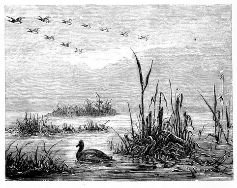 I suppose I must call you so, though I declare I know not how we are related. But, though I am thought so very wild and shy, I have still a kind of fellow-feeling for you; and, if you have not gone to the spit before this comes to you, I should be glad of your reply in a friendly way. You know very well that you are intended to be eaten, and so are we—when they can catch us. I understand that you never fly and that you seldom waddle above a meadow's length from your pond, where you keep puddling and groping from daylight till dark. This, I assure you, is not the life that I lead. We fly together in vast numbers in the night, for many miles over this flat, wet country; so, as to water, we have an inexhaustible store: we may swim ourselves tired. But, I dare say, every station of our duck-lives is subject to some disadvantages and some calamities. Thus, with all our wildness, we are not secure; for we are taken sometimes by hundreds in a kind of trap which is called a decoy.