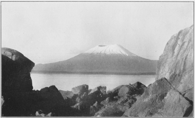 Mount Edgecumbe, 3467 ft.–Taking a launch from Sitka the trip may be made to Crab Bay, or to the landing behind the island of St. Lazaria on which is a populous bird rookery, and the ascent of the mountain is possible to be made in a day. Perhaps better that two days be taken to the trip, however. The first to go to the top was Lisianski in 1804. From the summit of the mountain an unusually beautiful panorama is to be had of island-studded bay, and mountain ridges capped with glaciers on one side, while on the other spreads the expanse of the broad Pacific.