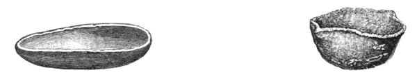 The little cup given in Fig. 459 is from Mobile, Alabama. It is pointed at opposite ends and was probably modeled after or within some basket or fruit shell, the impressions from which are seen on the surface. The paste contains no perceptible tempering material.