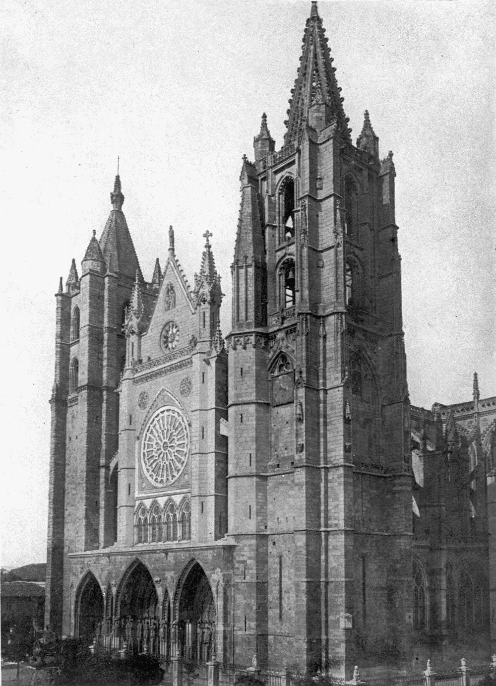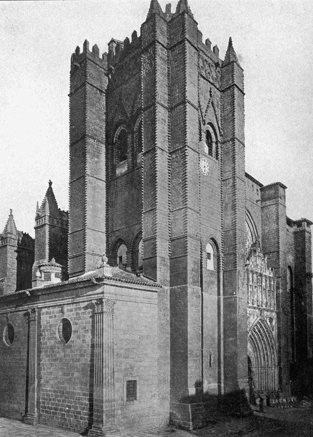 It has seemed to me that certain buildings, and especially cathedrals, cannot be properly studied quite apart from what surrounds them, or from their past history. To look comprehendingly up at cathedral vaults and spires, one must also look beyond them at the city and the people and times that created them. In some such setting, the study of Avila, Salamanca the elder and the younger, Burgos, Toledo, Leon, Segovia, Seville, and Granada is here attempted, in the hope it will not prove too technical for the ordinary traveler, nor too superficial for the student of architecture. The cathedrals selected cover nearly all periods of Gothic art, as interpreted in Spain, as well as the earlier Romanesque and succeeding Renaissance, with which the Gothic was mingled. All the great churches were the work of different epochs and consequently contain several styles of architecture. The series here described is very incomplete, but the book would have grown too bulky had it included Santiago da Compostella with its heavenly portal, and Barcelona or Gerona, Lerida or Tudela.