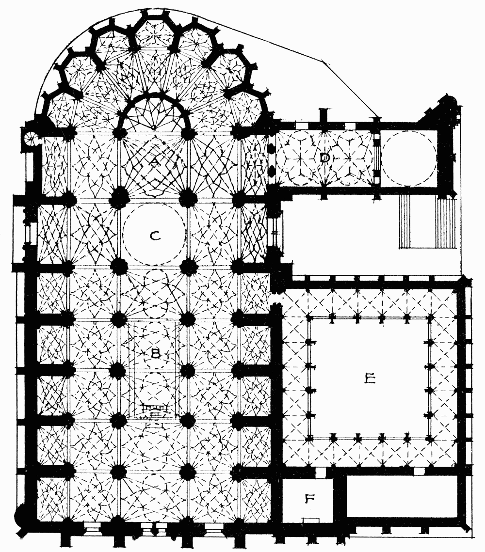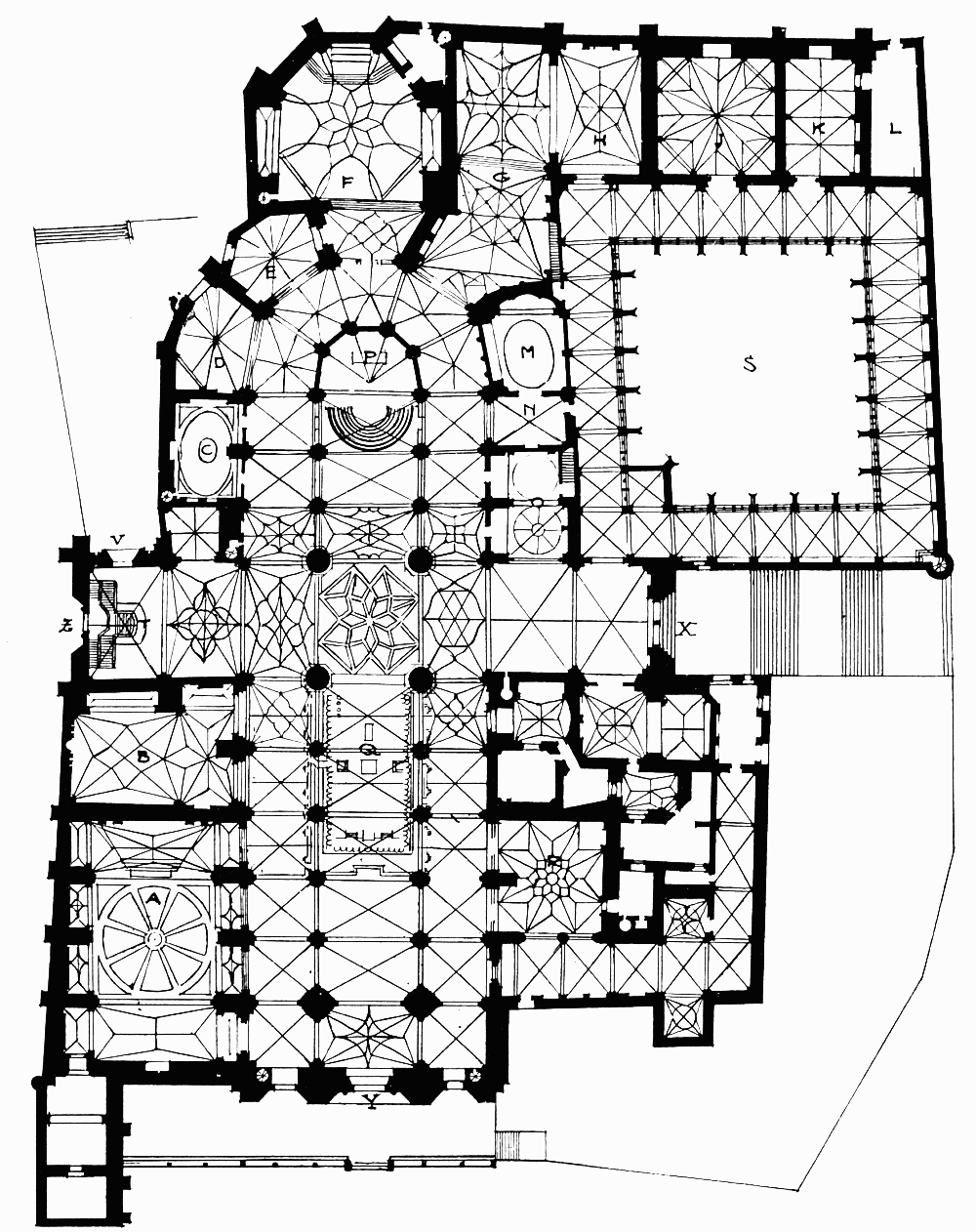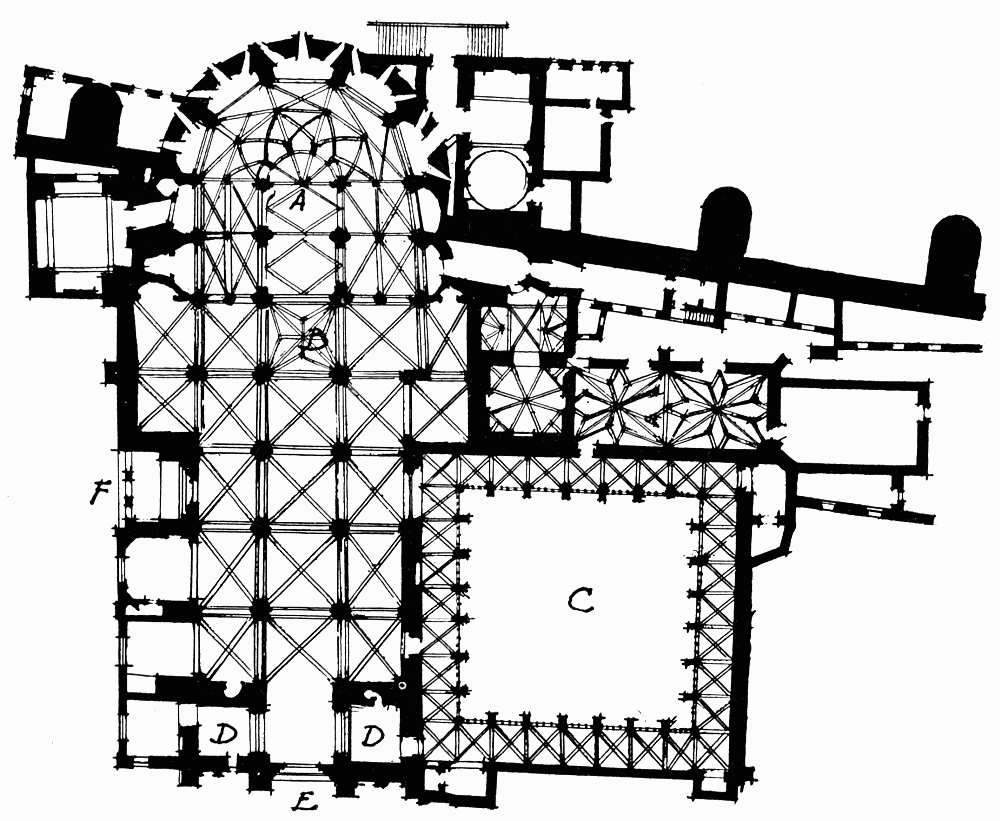 | C, C. | Crossing. | G, G. | Apsidal Chapels. |