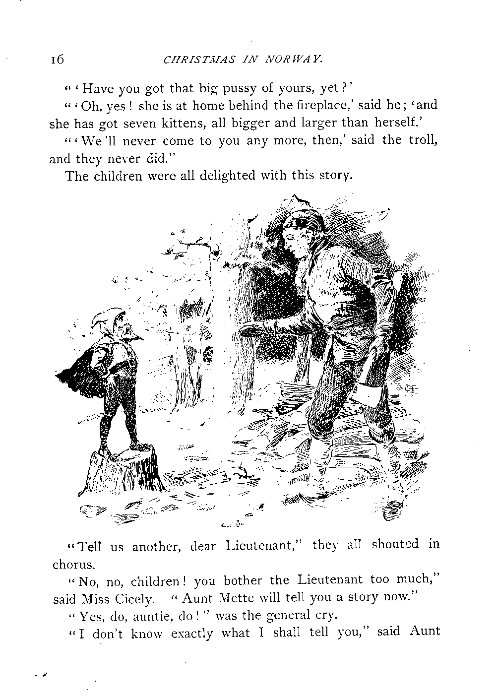 "No, no, children! you bother the Lieutenant too much," said Miss Cicely. "Aunt Mette will tell you a story now."