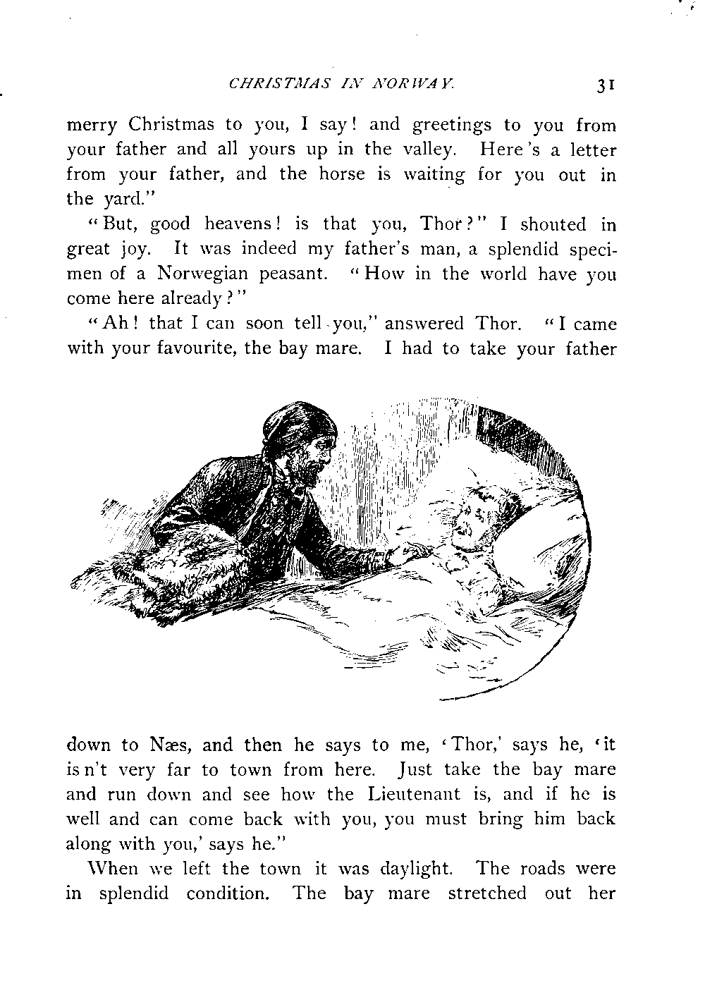 "You must be dreaming," he said, "the perspiration is standing in big drops on your forehead, and you were sleeping as heavily as a bear in his lair! God's peace and a[Page 31] merry Christmas to you, I say! and greetings to you from your father and all yours up in the valley. Here's a letter from your father, and the horse is waiting for you out in the yard."