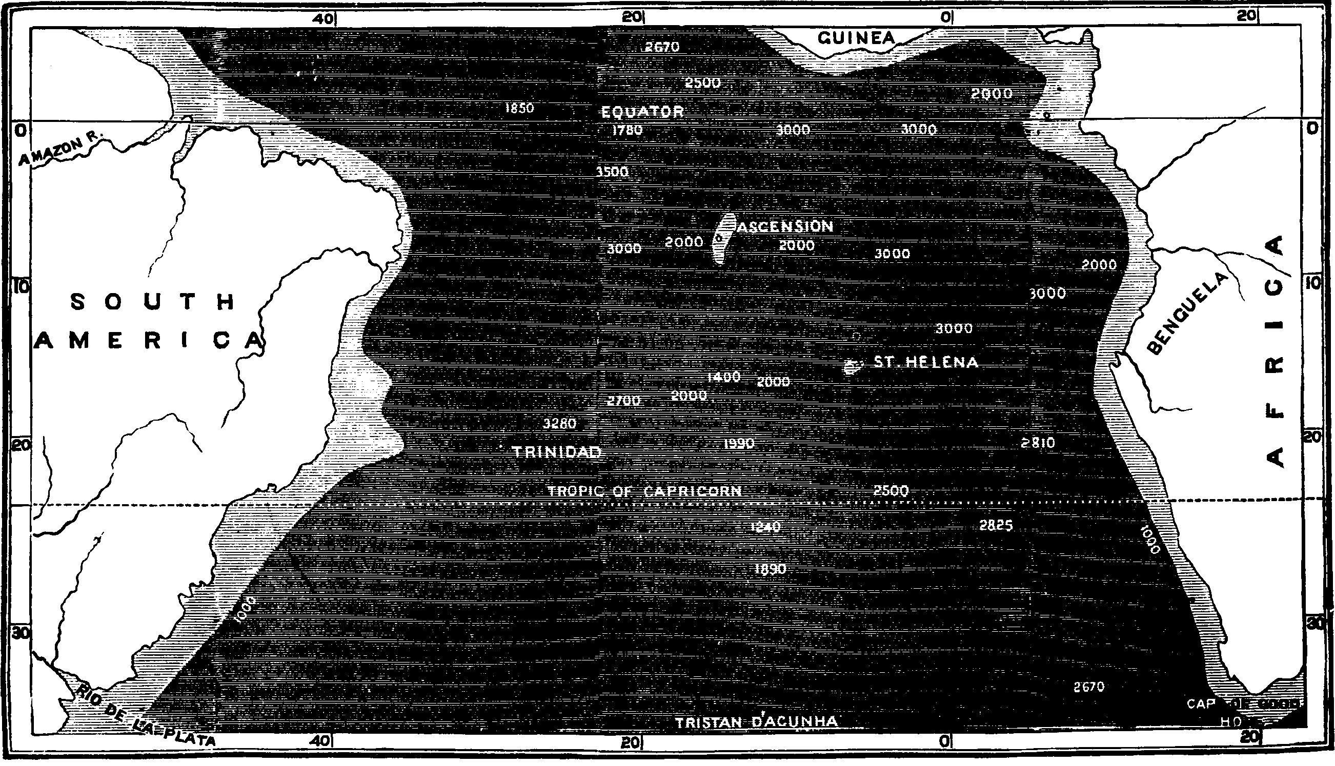 [194] The recent discovery by Lieutenant Jensen of a rich flora on rocky peaks rising out of the continental ice of Greenland, as well as the abundant vegetation of the highest northern latitudes, renders it possible that even now the Antarctic continent may not be wholly destitute of vegetation, although its climate and physical condition are far less favourable than those of the Arctic lands. (See Nature, Vol. XXI. p. 345.)