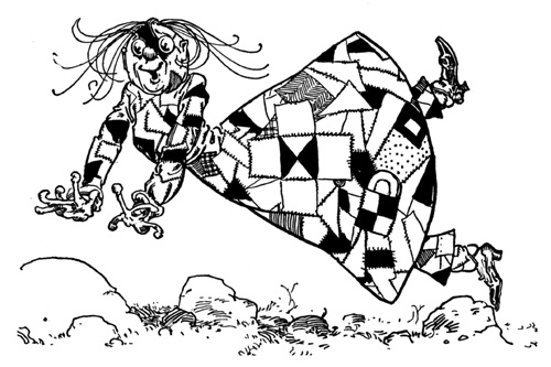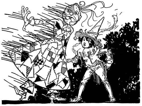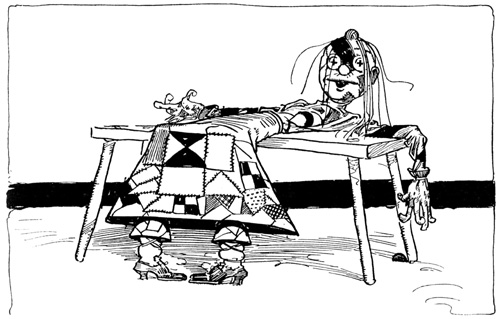 "And mine," said Scraps. "I've just thirteen patches on my head."