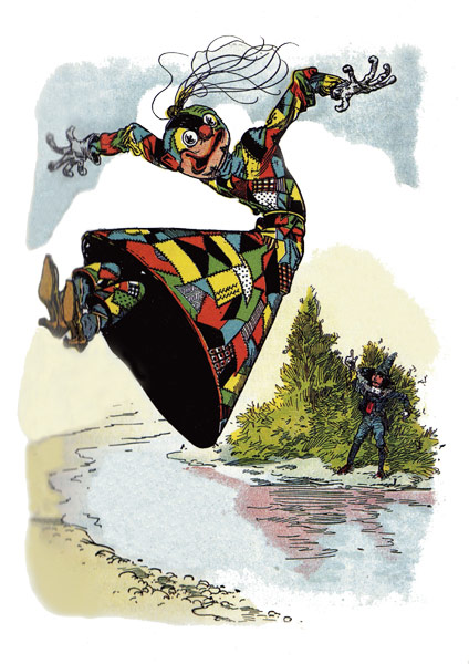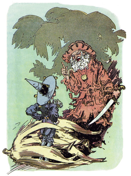 At the foot of the mountain that separated the Country of the Munchkins from the Country of the Gillikins, the path divided. One way led to the left and the other to the right—straight up the mountain. Unc Nunkie took this right-hand path and Ojo followed without asking why. He knew it would take them to the house of the Crooked Magician, whom he had never seen but who was their nearest neighbor.