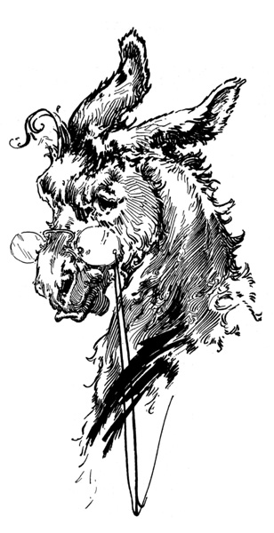 Aside from the marble statues of Unc Nunkie and Margolotte, the Glass Cat was there, curled up on a rug; and the Woozy was there, sitting on its square hind legs and looking on the scene with solemn interest; and there was the Shaggy Man, in a suit of shaggy pea-green satin, and at a table sat the little Wizard, looking quite important336 and as if he knew much more than he cared to tell.