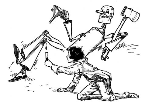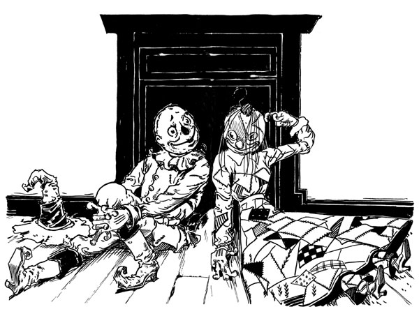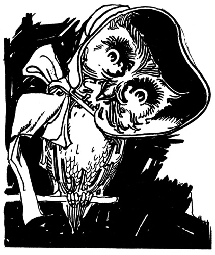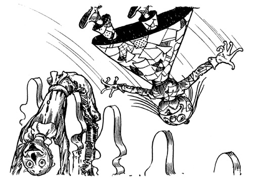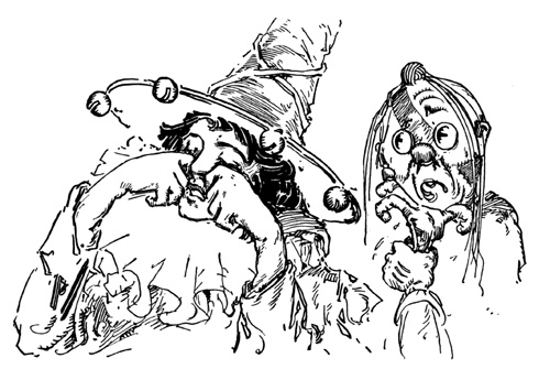 Last of all, Dr. Pipt was there, and the Crooked Magician sat humped up in a chair, seeming very dejected but keeping his eyes fixed on the lifeless form of his wife Margolotte, whom he fondly loved but whom he now feared was lost to him forever.