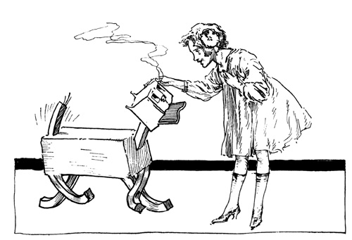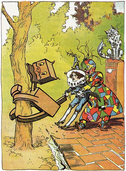 The title page of this book says that it is "an account of the further adventures of the Scarecrow and the Tin Woodman, and also the experiences of the Highly Magnified Woggle-Bug, Jack Pumpkinhead, the Animated Saw-Horse and the Gump." Also in this book Mr. Baum first presents Princess Ozma of Oz, Mombi, the witch; General Jinjur, and Dr. Nikidik, inventor of the famous wishing pills.