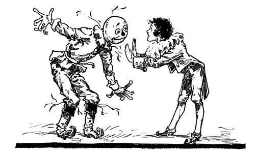 Ojo was astounded at hearing this. Dorothy, too, looked grave and disconcerted, but she knew in her heart that the Tin Woodman was right. The Scarecrow nodded his head in approval of his friend's speech, so it was evident that he agreed with the Emperor's decision. Scraps looked from one to another in perplexity.
