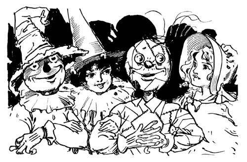 "As for the Patchwork Girl," resumed the Wizard, "she is so remarkable in appearance, and so clever and good tempered, that our Gracious Ruler intends to preserve her carefully, as one of the curiosities of the curious Land of Oz. Scraps may live in the palace, or wherever she pleases, and be nobody's servant but her own."