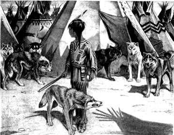 "Far out along the prairies to the sun-rising is the camp of my people. My people are very many. They outnumber the wolves. As the foxes and lynxes are enemies to the wolves; so my people have enemies who are thirsting for their blood. The enemies of my people are now gathering to attack. They are numerous and very strong. If I do not carry help to my people, they will be pulled down and killed, as the wolves pull down the moose when he is yarded for the winter, and food is scarce. By myself I can do little, though my people say I own the wolf-medicine. But the wolf-medicine that is in me is only strong enough when I am running with a wolf. Kiopo and I are very strong together. With you, we should be stronger still. With the pack, nothing could stand against us. The medicine then would be on many feet. If you will lead the pack, and follow us, we shall save my people from their death."