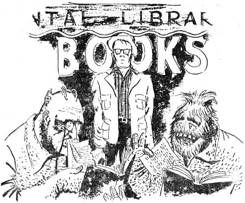 Then, while Herman gaped and made retching sounds, the two disgusting little men tore pages out of the books and stuffed them in their mouths. When they finished the pages, they ate the bindings. Then there was a rather sick pause while they seemed to digest the contents of the books they had literally devoured. Herman had the wild thought that they were blurb writers whose jobs had gone to their heads.