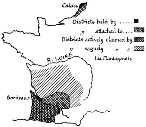 When Calais had fallen and had become an English possession in the summer of 1347 no peace followed. A truce was patched up for some months, followed by further truces. Through the mediation of the Pope a final and definite treaty was sketched, which should terminate the war upon the cession of Aquitaine to Edward III. in full sovereignty. The French Valois king would perhaps have agreed to a settlement which would have preserved his feudal headship, though it would have put the Plantagenets in virtual possession of half France (as France was then defined). But Edward III. would not accept the terms. He had claimed the crown of France. He had won his great victory at Crécy still claiming that crown. He would not be content with adding to his feudal tenures under the French crown. He would add to his sovereignty at least, to his absolute[Pg 11] sovereignty, or continue the war. In 1354 (the Black Death intervening) the war was renewed. Edward would have been content, not with the whole of Aquitaine, but with complete sovereignty over the triangle between the Garonne and the Pyrenees in the south, coupled with complete sovereignty over the north-eastern seaboard of France from the Somme to Calais, and inland as far as Arras, and its territory, the Artois. But the French monarchy, though ready to admit feudal encroachments, would not dismember the nominal unity of the kingdom: just as a stickler in our north will grant a 999-year lease, but will not sell.