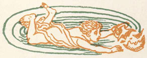 I cannot tell you half that he did. He skimmed straight forward, and sideways, and backward. He reared himself erect, with his fore legs on a wreath of mist, and his hind legs on nothing at all. He flung out his heels be-192-hind, and put down his head between his legs, with his wings pointing right upward. At about two miles' height above the earth, he turned a somerset, so that Bellerophon's heels were where his head should have been, and he seemed to look down into the sky, instead of up. He twisted his head about, and, looking Bellerophon in the face, with fire flashing from his eyes, made a terrible attempt to bite him. He fluttered his pinions so wildly that one of the silver feathers was shaken out, and, floating earthward, was picked up by the child, who kept it as long as he lived, in memory of Pegasus and Bellerophon.