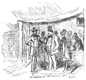 As they shook hands, Mr. Dropper's attention was called in another direction. He desired his companions to notice the fact that a man was approaching with his umbrella, and having bought and lost too many articles of that description, he should not stand unmoved, and see the last one vanish from his sight.