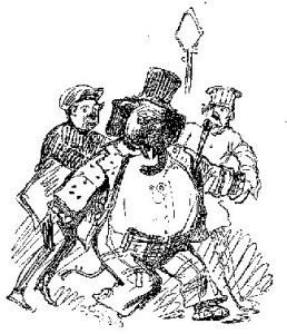 Mr. Dropper insisted that there was the evidence, "R. Dropper," meaning Remington Dropper—Remington Dropper being himself—"Stolen from R. Dropper," by whom?—He would not assert positively[Pg 22] that fat party was a hall-thief, but he would say and he did say, that his umbrella was found in fat party's possession, without his permission. Some old stick-in-the-mud had said somewhere, to somebody, sometime, that an honest confession was good for the soul, and if fat party would acknowledge the unbuilt whisky, he wouldn't appear against him on his trial for petty larceny. Fat party repudiated the idea that he was a thief. As far as Mr. Dropper's recollection assisted him he had always noticed that the biggest rascals protested their innocence the most emphatically. Fat party appealed to Mr. Dropper's magnanimity to hear his explanation, which Mr. Dropper consented to do.