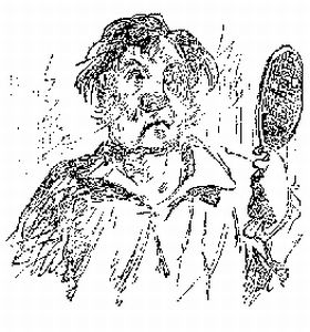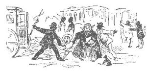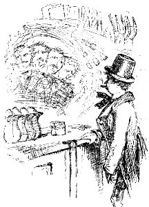 There was nothing remarkable in the dress of the person to whom we have alluded. He was evidently a victim to the popular insanity of conforming to fashion. So strictly were his garments cut and made in accordance with the prevailing style, no one could doubt for a moment that the taste, or want of taste, manifested in his dress, was not his own, but the tailor's. In his hand he held a small cane, with which he amused himself, first, by biting the ivory head, then by making it turn summer-[Pg 14]saults through the fingers of his right hand, after the manner in which Hibernians are supposed to exercise their shillelahs.