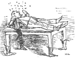 Dropper made a humiliating apology, swore eternal friendship to Boggs, introduced him to Van Dam and Spout, and invited the party to his room to spoil a snifter from his private bottle. They accepted the invitation with commendable alacrity, and soon arrived at Mr. Dropper's cozy apartment, which was situated on one of the streets intersecting Broadway. At Mr. Dropper's request, they seated themselves in a circle around the table, with the view of calling up the spirits, but whether saintly or satanic, the compilers of these records do not venture an opinion. After sitting three minutes and twenty seconds in solemn silence, it was discovered that Dropper was a medium, as he was enabled to bring up the spirits in tangible and unmistaken shape from his closet, and forthwith communications of a very satisfactory character were made to the circle. Indeed, the opinion was very generally expressed, that the spirits were genuine spirits, and the medium an excellent test medium, through which they should delight, in future, to have further communications.