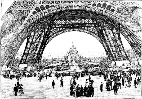 Figure 6.—The promenade beneath the Eiffel Tower, 1889. (From La Nature, Nov. 30, 1889, vol. 17, p. 425.)