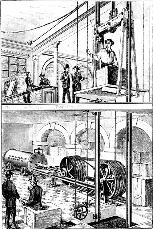 [7] Two machines, by Otis, in the Demarest Building, Fifth Avenue and 33d Street, New York. They were in use for over 30 years.