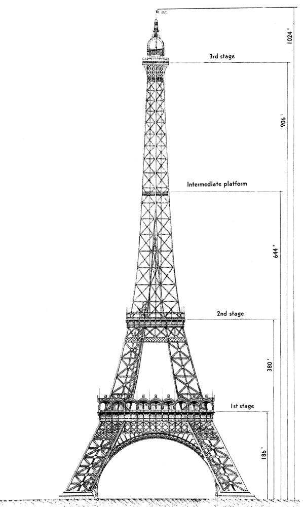 The 1,000-foot tower that formed the focal point and central feature of the Universal Exposition of 1889 at Paris has become one of the best known of man’s works. It was among the most outstanding technological achievements of an age which was itself remarkable for such achievements.