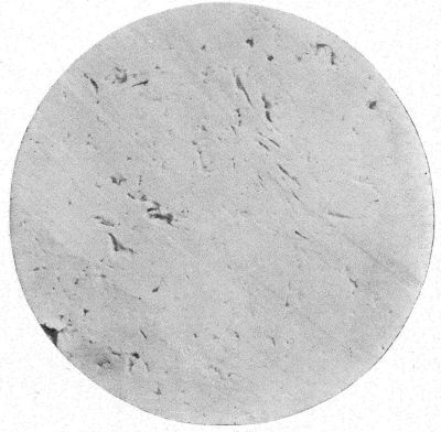 Fig. 4.—Plate Culture.In order to make sure that the number of colonies is not so numerous as to prevent counting and further study of their characteristics, a series of plate cultures is usually made in which varying amounts of milk are added to the tubes of gelatine. This is attained by adding a definite amount of the milk or other substance to be examined to a measured amount of sterile water, e.g., one cubic centimeter of milk to ninety-nine cubic centimeters of water. One cubic centimeter of this mixture may be used for the inoculation of the plate culture. This dilution may be carried on to any desired extent; in the examination of many dairy products, it is necessary to use very minute quantities of material, often only one one-millionth of a cubic centimeter.