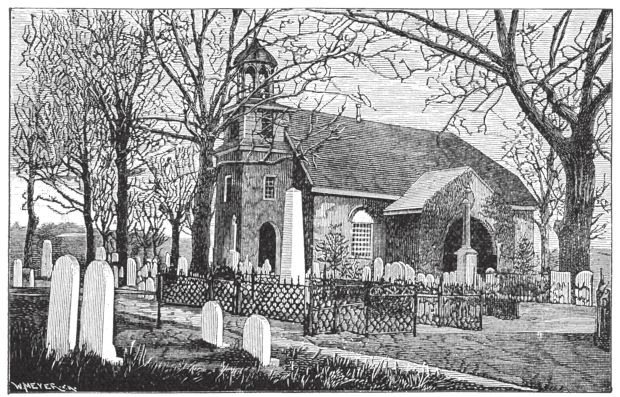 The platforms were decorated with numerous society banners, and the colors of Sweden were seen everywhere. The lofty pillars reaching to the roof were wrapped in alternate stripes of blue and yellow, the national colors of Sweden, and side by side and uppermost were the stars and stripes. A large picture of the old Swedes Church in Wilmington, Delaware, built in 1698, was hung in front of the speakers’ platform, and attracted general attention.