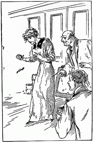She got up and paced the floor thinking deeply, trying to solve the meaning. She at last went to a window and spread the paper on the pane for the purpose of getting a better light on it. Her gaze, at first careless, suddenly became keen. All at once she whirled about and dashed from the room.