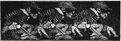 And all the while Selina and Charlotte were busy stuffing Edward's rabbits with unwonted forage, bilious and green; polishing up the cage of his mice till the occupants raved and swore like householders in spring-time; and collecting materials for new bows and arrows, whips, boats,[251] guns, and four-in-hand harness, against the return of Ulysses. Little did they dream that the hero, once back from Troy and all its onsets, would scornfully condemn their clumsy but laborious armoury as rot and humbug and only fit for kids! This, with many another like awakening, was mercifully hidden from them. Could the veil have been lifted, and the girls permitted to see Edward as he would appear a short three months hence, ragged of attire and lawless of tongue, a scorner of tradition and an adept in strange new physical tortures, one who would in the same half-hour dismember a doll and shatter a hallowed belief,—in fine, a sort of swaggering Captain, fresh from the Spanish Main,—could they have had the least hint of this, well, then perhaps——. But which of us is of mental fibre to stand the test of a glimpse into futurity? Let us only hope that, even with certain disillusionment ahead, the girls would have acted precisely as they did.