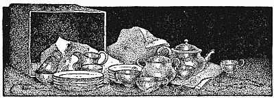 Harold reached the town—so he recounted afterwards—in record time, having run most of the way for fear the tea-things, which had reposed six months in the window, should be snapped up by some other conscience-stricken lacerator of a sister's feelings; and it seemed hardly credible to find them still there, and their owner willing to part with them for the price marked on the ticket. He paid his money down at once, that there should be no drawing back from the bargain; and then, as the things had to be taken out of the window and packed, and the afternoon was yet young, he thought he might treat himself to a taste of urban joys and the vie de Bohême. Shops came first, of course, and he flattened his nose successively against the window with the indiarubber balls in it, and the clock-work locomotive; and against the barber's window, with wigs on blocks, reminding him of uncles, and shaving-cream[231] that looked so good to eat; and the grocer's window, displaying more currants than the whole British population could possibly consume without a special effort; and the window of the bank, wherein gold was thought so little of that it was dealt about in shovels. Next there was the market-place, with all its clamorous joys; and when a runaway calf came down the street like a cannon-ball, Harold felt that he had not lived in vain. The whole place was so brimful of excitement that he had quite forgotten the why and the wherefore of his being there, when a sight of the church clock recalled him to his better self, and sent him flying out of the town, as he realised he had only just time enough left to get back in. If he were after his appointed hour, he would not only miss his high triumph, but probably would be detected as a transgressor of bounds—a crime before which a private opinion on multiplication sank to nothingness. So he jogged along on his homeward way, thinking of many things, and probably talking to himself a good deal, as his habit was. He had covered nearly[232] half the distance, when suddenly—a deadly sinking in the pit of his stomach—a paralysis of every limb—around him a world extinct of light and music—a black sun and a reeling sky—he had forgotten the tea-things!