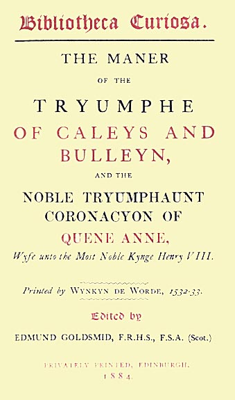 Title: The Maner of the Tryumphe of Caleys and Bulleyn and The Noble Tryumphant Coronacyon of Quene Anne, Wyfe unto the Most Noble Kynge Henry VIII