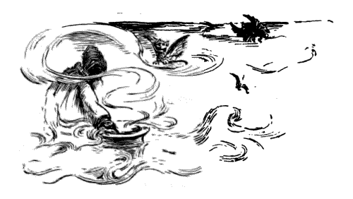 The extreme ledge of the promontory is a great block of reddish-brown rock. It rises precipitously out of the dark green waves, which incessantly storm it with their foam-crested dragon-heads. Some spring-tide monster will often lash itself aloft to the very summit,[Pg 3] frightening the seagulls and eagles that love to range themselves along the verge of the rock.