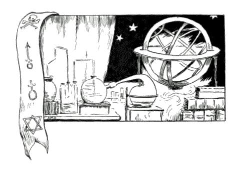 He was at once admitted. Strange to say, although he came quite alone, his eyes were not even bound—as he had fully convinced himself they would be—before he was conducted to the Master's presence. He was allowed to look all around and see everything. On returning home there would be absolutely nothing to prevent him telling everybody that the tower, with all its inner staircases, was built of massive stone, and that it was divided internally into very many stories. On reaching the twelfth story the reverend gentleman was received by the Master of the tower. This portion of the building had the appearance of[Pg 24] an observatory, and was surmounted by a lofty dome. The room was six-sided, and had three large windows looking towards the sea, the three opposite walls being covered with wainscot. Everything in the room indicated that it served as the study of a man of science. There were astronomical instruments, musty books, and numerous chemical tubes and retorts. In addition there were all kinds of superstitious designs, alchemistic abracadabras and symbols, in which no man of sense any longer believes.