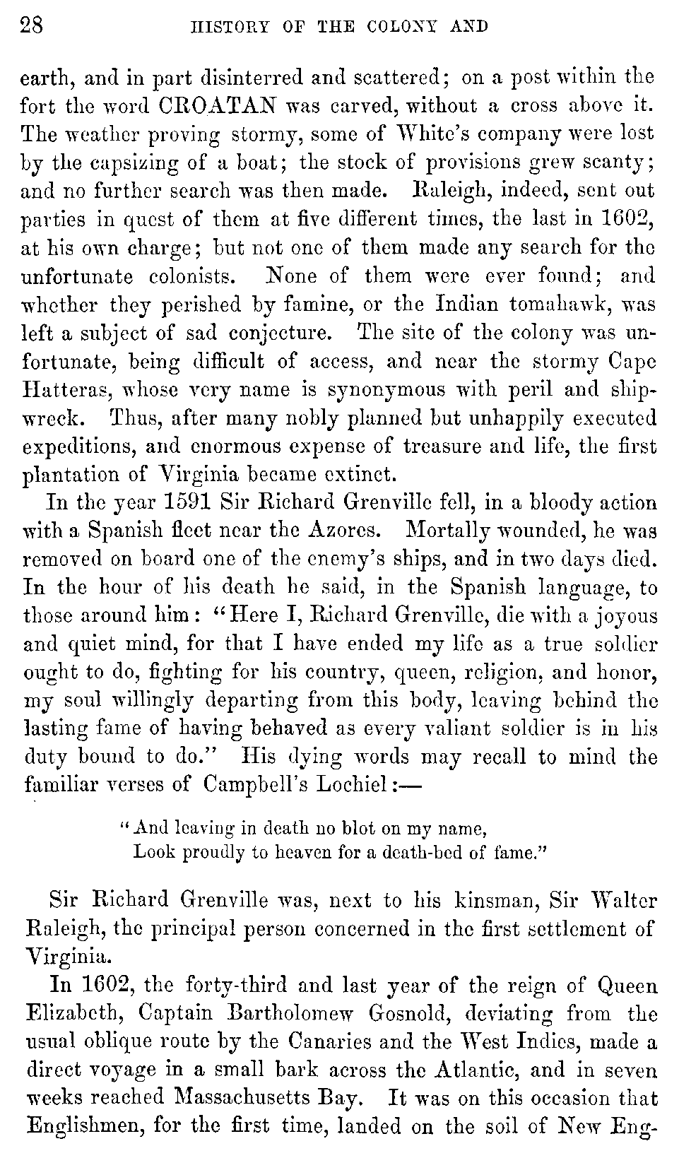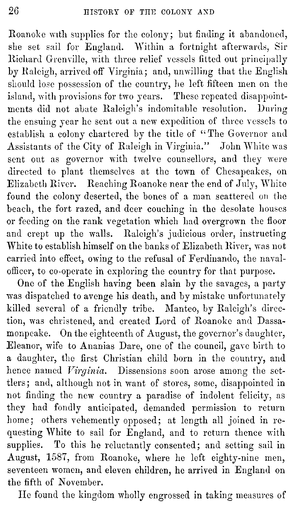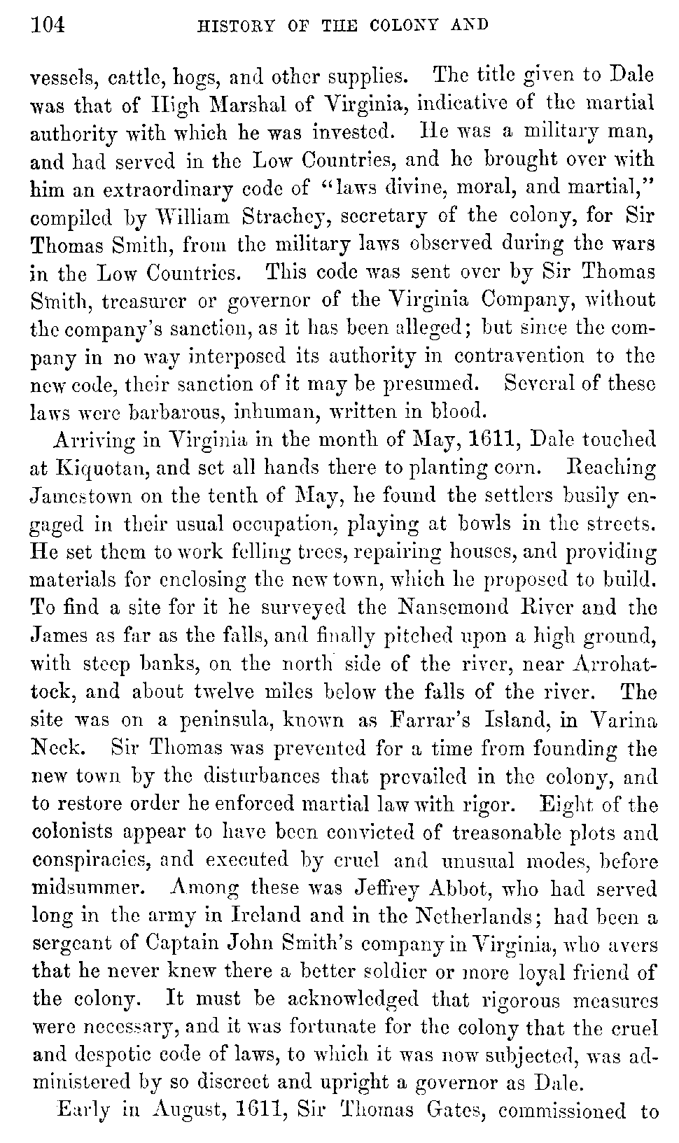 | VII. | —Sufferings of the Colonists. Wreck of the Sea-Venture. Miscellaneous Affairs. Percy, President. Lord Delaware, Governor. Percy, Acting Governor. Sir Thomas Dale, High Marshal. Sir Thomas Gates, Governor. | 92 |