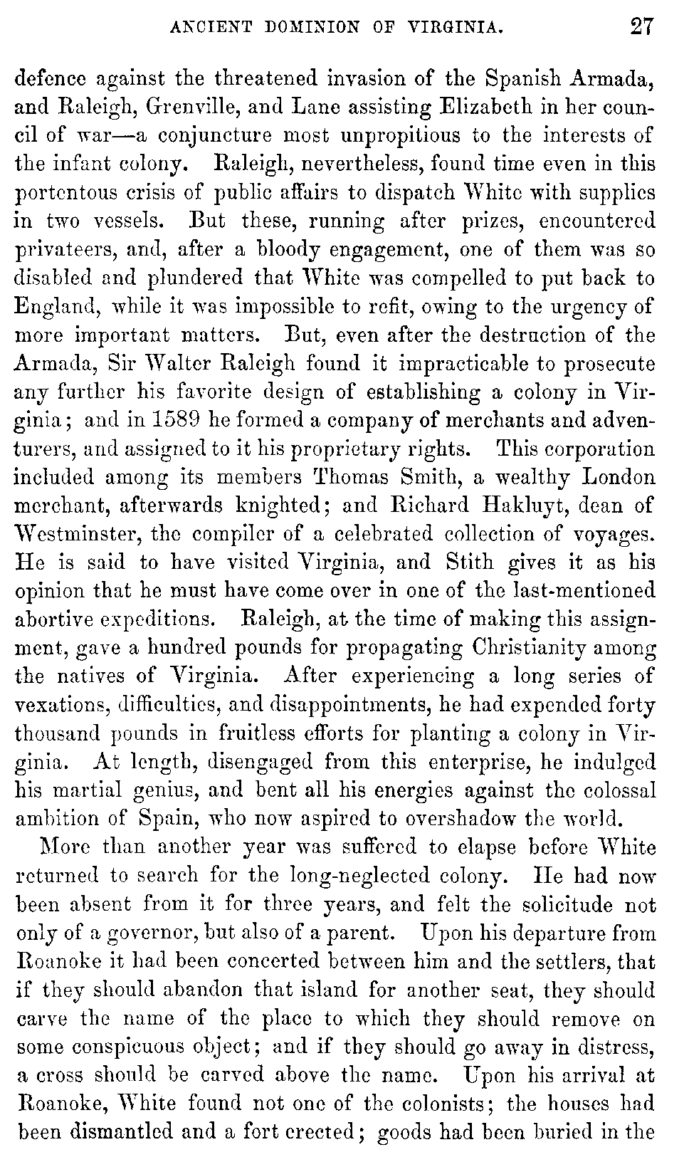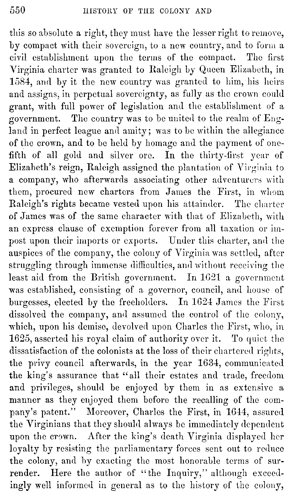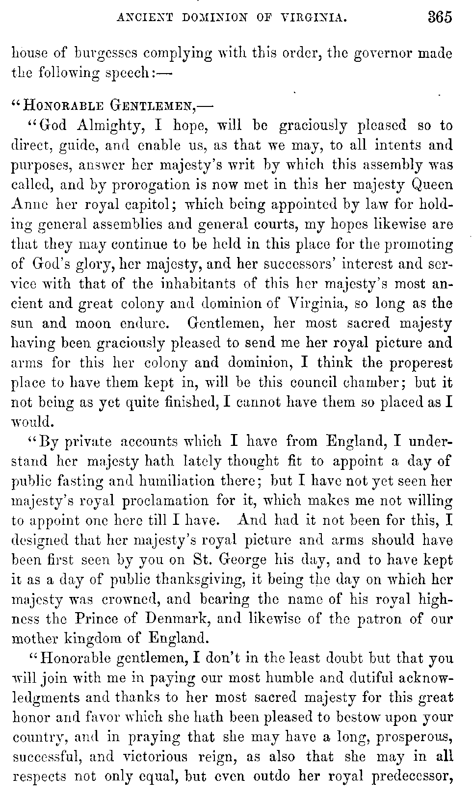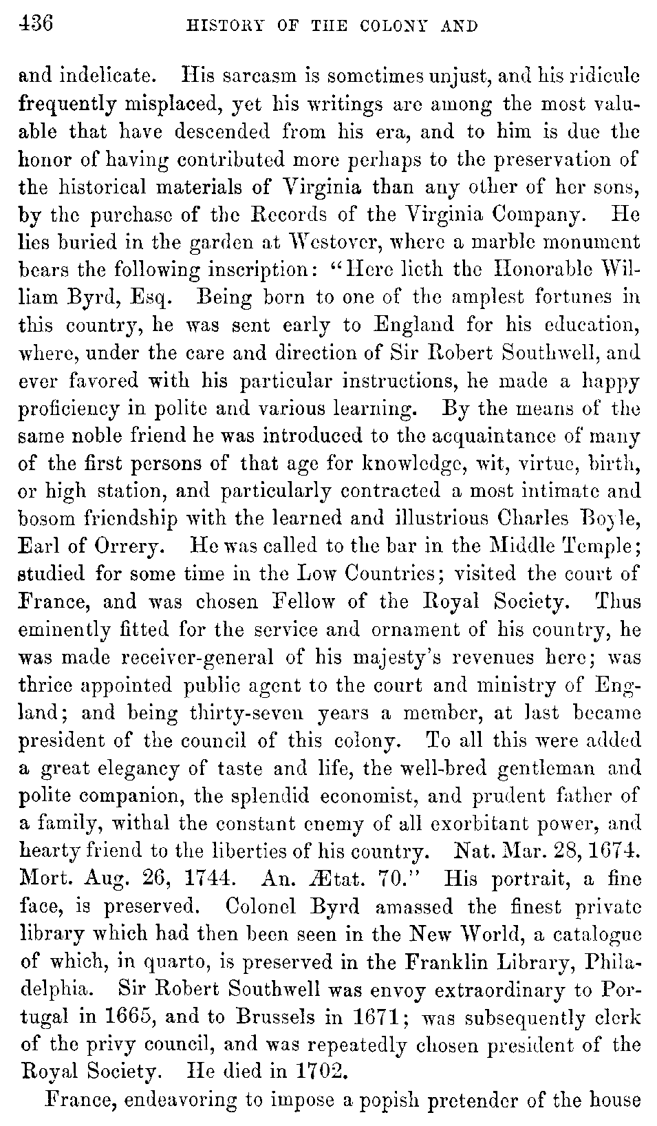 Although Virginia must be content with a secondary and unpretending rank in the general department of history, yet in the abundance and the interest of her historical materials, she may, without presumption, claim pre-eminence among the Anglo-American colonies. While developing the rich resources with which nature has so munificently endowed her, she ought not to neglect her past, which teaches so many useful lessons, and carries with it so many proud recollections. Her documentary history, lying, much of it, scattered and fragmentary, in part slumbering in the dusty oblivion of Transatlantic archives, ought to be collected with pious care, and embalmed in the perpetuity of print.